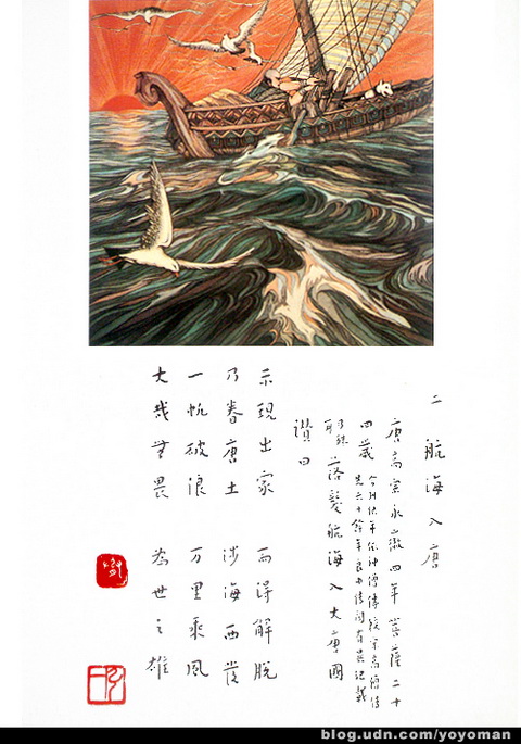 唐高宗永徽四年,菩薩二十四歲(今列紀年,依神僧傳,較宋高僧傳先六十餘年,良由傳聞有異,記載乃殊耳。)落髮,航海入大唐國。