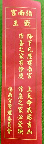 籤詩上寫著「降下凡塵建南宮,上天命我察吉凶;作善之家有餘慶,作惡之家必受殃。」