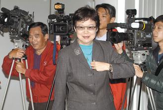 | 國立故宮博物院院長馮明珠(中)上午出面說明票價調漲原因。 記者陳再興/攝影 |