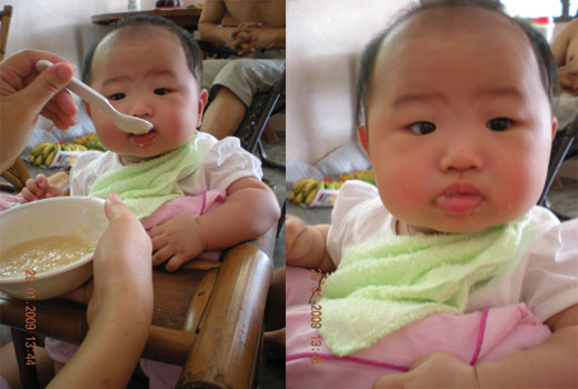 我長大了喔....今天開始吃粥了....