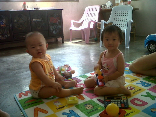 轉眼間,弟弟也學會坐了,現在就是和姐姐吵架的時刻了.....