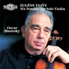 Ysaÿe聆聽Szigeti演奏的巴哈無伴奏曲深受感動而激發創作此曲目的靈感,若無Szigeti樸實無華又深厚真摯的詮釋,也許今日我們無法聽到Ysaÿe這麼精彩的無伴奏作品。六首曲目分別提贈給Ysaÿe的六位好友,分別是Szigeti、Thibaud、Enesco、Kreisler、Crickboom、Quiroga,其中前四位小提琴家都在小提琴演奏史上佔有一席之地,加上Ysaÿe,活脫脫是近代歐陸小提琴演奏大師交遊史的見証。此六首作品在精神上深受巴哈影響,但又烙印上近代小提琴演奏技巧發展的痕跡。第二首第一樂章借用巴哈樂句來開展變化,讓人略窺Ysaÿe轉化巴哈作品的題旨和創作才能,也是一開始聆聽此作最感到親切的樂章。此作充滿艱難的小提琴技巧,可說是Ysaÿe對小提琴可能的技巧變化作探索,從弓法、和聲變化,到琶音、撥奏,讓作品展現出迥異於巴哈的現代精神。但如加以仔細聆聽,此作品不完全是展技之作,法比樂派獨特的優美樂音和旋律也不時盤旋於音樂之間。在我聆樂生涯的初期,我努力消化聆聽Ysaÿe這六首艱澀的無伴奏作品而獲得某種程度的共鳴體驗,比Pierre Rode的罕見曲目更為深入。而Shumsky精湛的詮釋也在此首作品的音樂中注入某種讓人難以忘懷的音色和意蘊,有時Ysaÿe的音樂聽來是蒼涼蕭瑟的,孤獨的感覺無形漫延,或許是小提琴的獨吟在喪失了如巴哈穩貼的宗教世界觀以及抽離了Pierre Rode與Paganini的二十四首自成一格的完足照應的奇想變化,所呈現的時代之音讓人感受期間的差異。Ysaÿe所體現的世界不僅達不到巴哈世界的精純從容,也缺少奇想曲炫技自得的滿足,而無形中迴應了現代人荒漠孤寂的身影,當技巧的開掘到無可為繼之時,當音樂性無法匹配技巧的飛揚高舉,遺留的只是空無的絕頂,這或許也是Ysaÿe從巴哈跨越到現代風格的反思。六首樂曲,愈到後來,愈言簡意賅,時有空靈飄邈之音,更加透顯Ysaÿe個人樂思的風格。當然所有的感受,都受Shumsky的詮釋左右,也許換個小提琴家我就只看到樂曲間的點光火石和目眩神搖的技巧。不過無伴奏的獨吟本就容易讓人浮想聯翩。