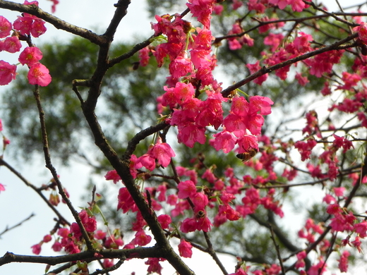 緋寒櫻花(山櫻)迎春開 蜂鳥紛來添生趣(附詩)