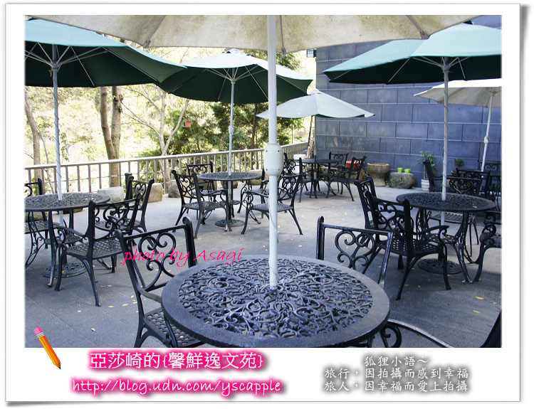 室內水療SPA溫泉館外,有些座椅可以坐下來喝熱茶,欣賞山林風景。夏天的時候,坐在這邊吹著山風好舒服的。不過,冬天就會感覺太冷。