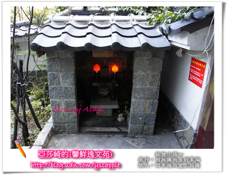 日式庭院內,有個很靈驗的土地公。(其他的旅人,到這邊許願靈不靈?亞莎崎不知道。但是,亞莎崎許的願望土地公有讓亞莎崎達成唷!)