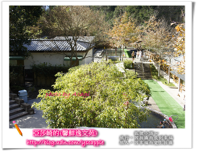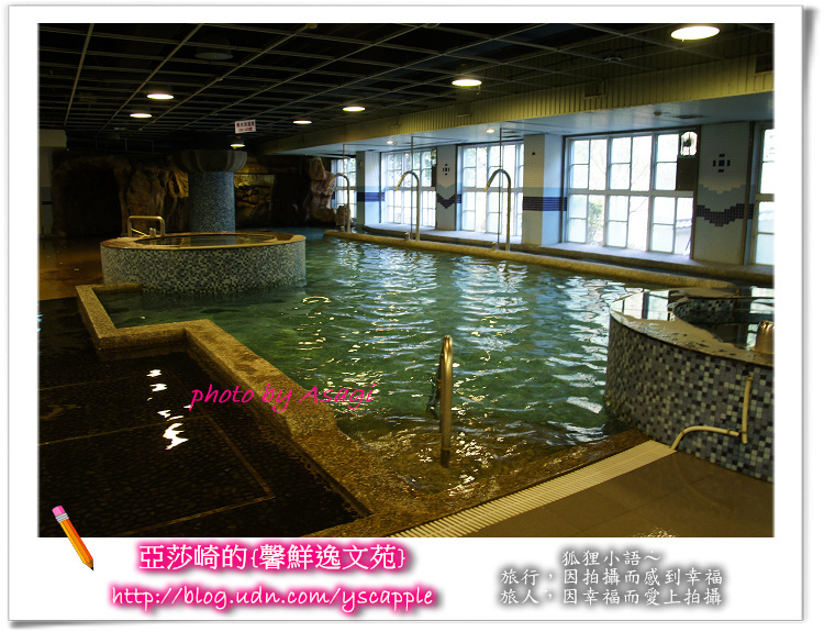 亞莎崎當天到谷關溫泉,一進到統一渡假村,就立馬換了泳裝跳到室內SPA水療館中,好好養受通體舒暢的舒服啦!不過,享受完室內的溫泉,當然要去舒適優雅的日式庭園露天溫泉泡泡湯,享受一下跟大自然風