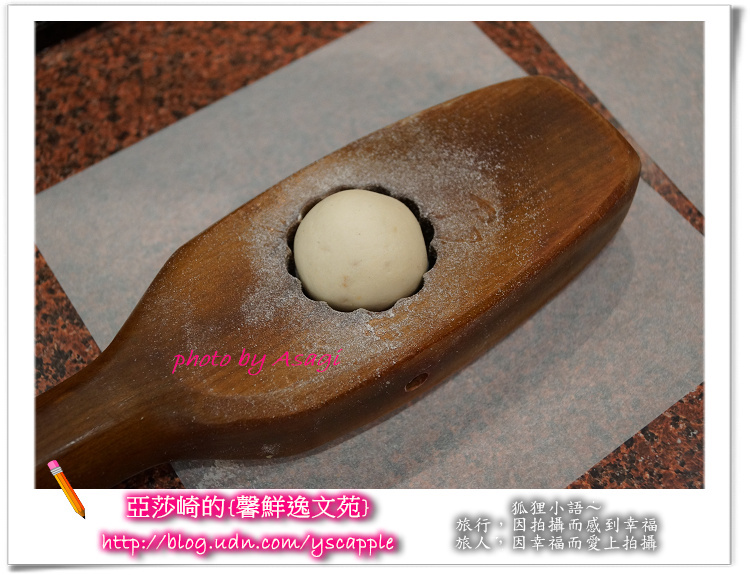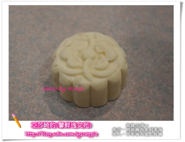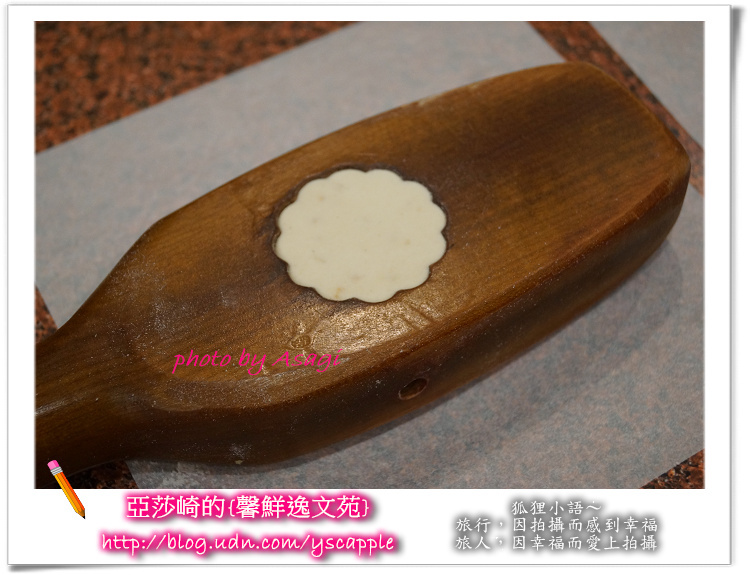 嘿嘿嘿...亞莎崎這塊杏仁狀元糕很成功唷!上面的花紋很漂亮喔!