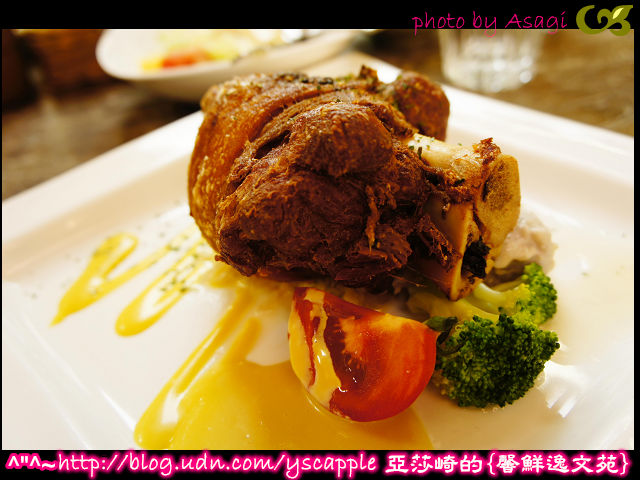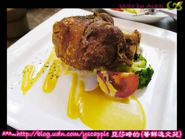 啊!亞莎崎跟其中一位朋友都點德國豬腳佐蜂蜜芥末醬做為主餐。