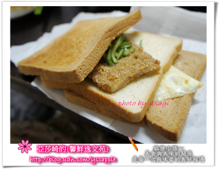 這裡的肉蛋吐司是大份量的有三層吐司,一層包蛋,一層包炸豬排。