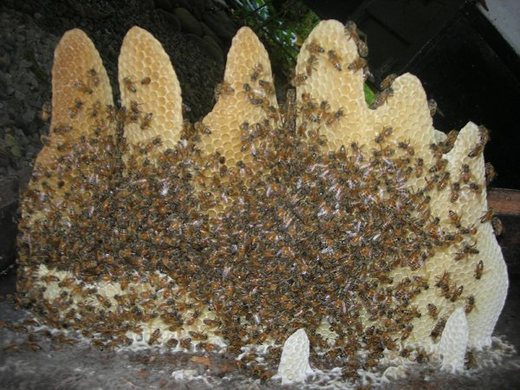 (圖一)僅能容納一位女王蜂的蜜蜂世界,嚴密的社會組織 ( 外來種奇特的蜂巢 )攝於東勢林場