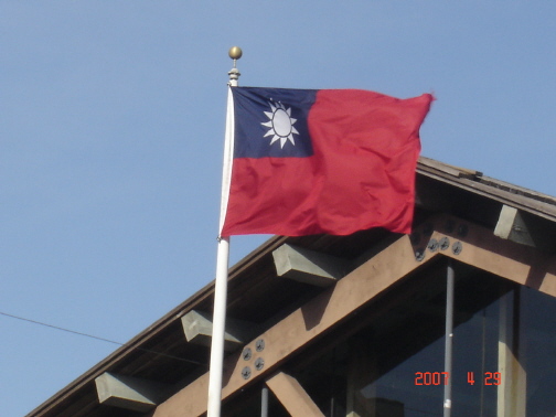 哇!我居然....居然看到中華民國的國旗在高空隨風飄揚(如下圖),此時的我真是感動的要噴淚水(還有鼻水, 因為風蠻大的,吹得我都快要流鼻水