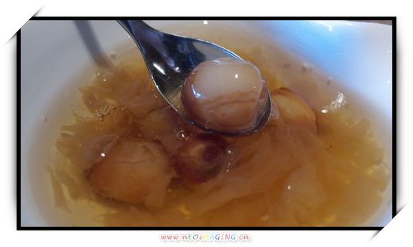 這道蓮子銀耳甜湯,為整個套餐畫下完美的結局。可別小看這一顆顆蓮子,大廚可是費心熬煮了十多個小時哩!銀耳湯其實味道不重,甚至不太有甜味,全部的味道都來自於蜜蓮子,蓮子雖甜,但卻神奇的不會膩耶,不曉得是用哪種糖熬煮的~
