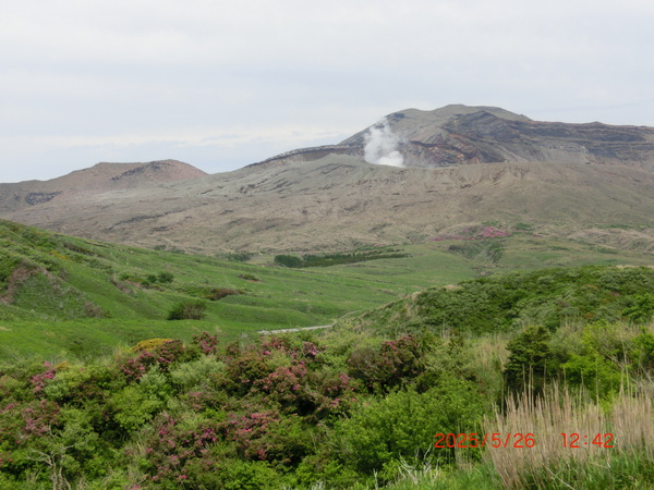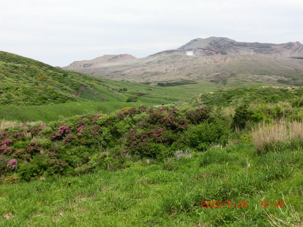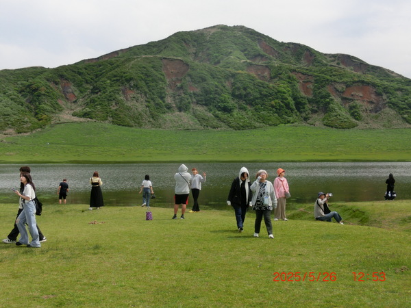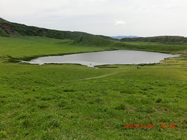 我們在2025年5月26日到日本旅遊的第一站就是到九州熊本縣的【草千里之濱】遙望阿蘇火山的「中岳」火山口,這是我們第二次到達這個地方旅遊,距離上次來這裡已過二十多年了看起來景色依舊,我們搭遊覽車到達「草千里之濱」的大停車場時映入眼簾的是一片青翠的草地,「草千里之濱」是阿蘇火山中最大(直徑約一公里)的大草原,草原中有二個小湖,我們循著遊客所留下的足跡往前走,但因距離阿蘇的「中岳」火山口尚有一段距離所以我們只能遠遠看著阿蘇中岳火山口噴出的白煙,然後我們就依循著遊客行走過所留下的足跡前往小湖拍照留念,湖區有一個小小馬場,遊客可以付費騎馬悠閑的環湖一圈,因為受時間限制,我們沒有去「中岳」看火山口也沒有騎馬就到「草千里之濱」的餐廳用餐。