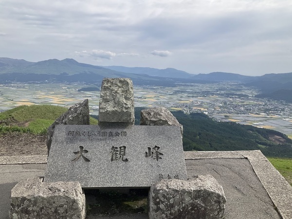 (「大觀峰」石碑,可以俯瞰阿蘇火山的盆地)