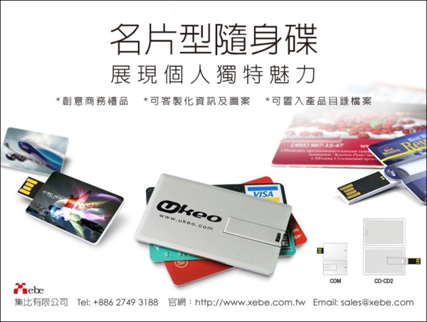 比起一般usb手指的立體方正設計, usb卡片的設計讓使用者更加方便收納,不管是要夾在皮夾內,甚至是名片盒裡,都能夠輕鬆收納,最重要的是,對於公司的企業禮品而言,無非是最佳的宣傳效果,名片型的設計讓公司想要宣傳的資訊可以表達的更加明確,更加一目了然的呈現,不只如此,還能夠預先存入產品目錄檔案,或是任何宣傳的文宣,都不是問題唷!