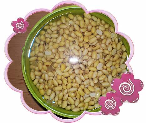 浸泡黃豆(約五小時)>將黃豆放到果汁機加水打碎>大同電鍋將生豆漿煮到滾>