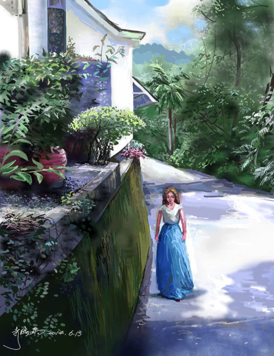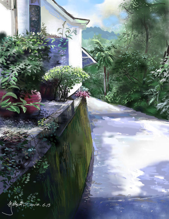 感覺像水彩,牆上青苔色澤逼真迷人