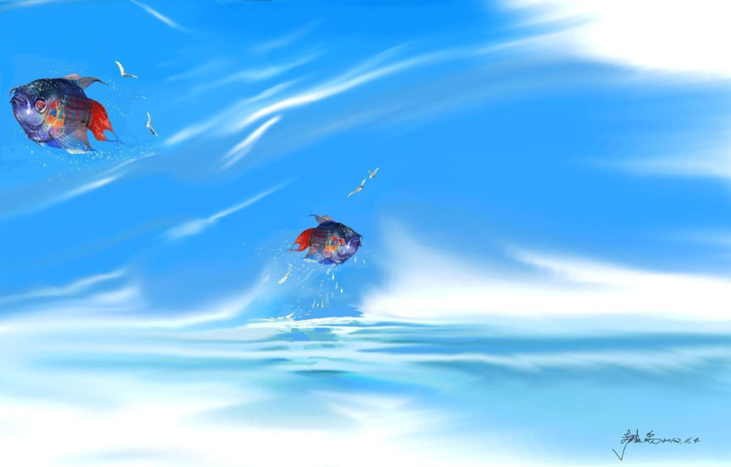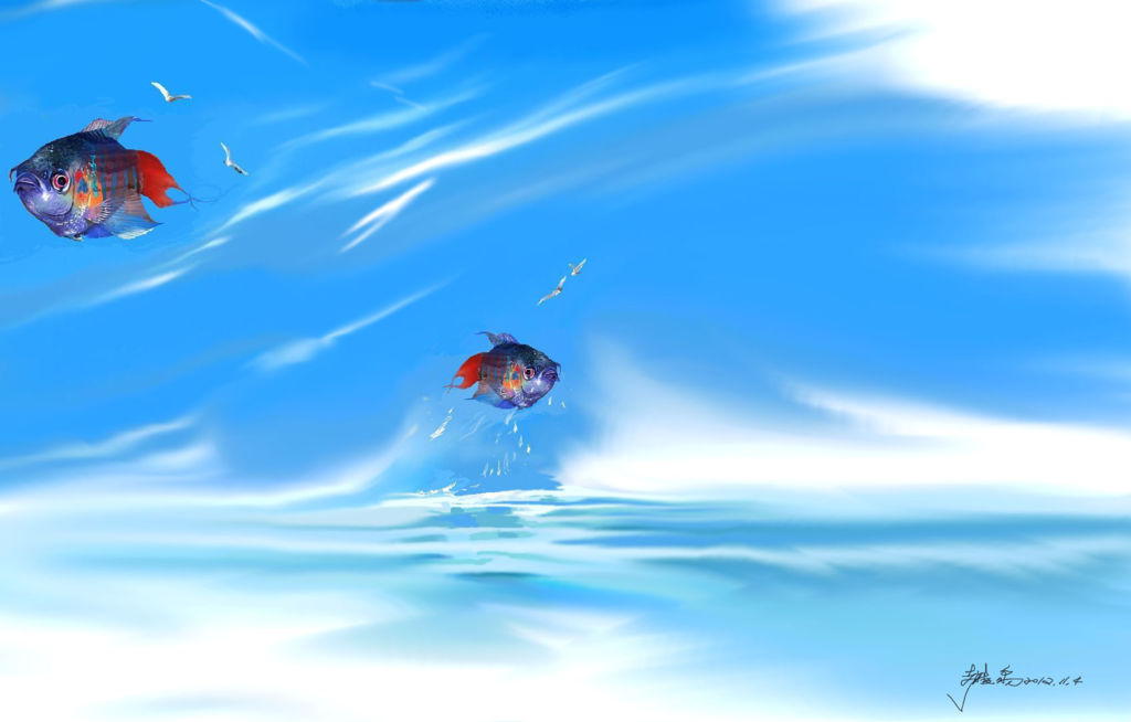 魚和鳥擺的位置很好, "飛揚" + 天空, 卻以魚為主角.