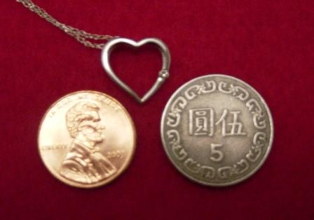 但在某一年 (網路購物剛開始的那年) 的某一天,圓爸喜滋滋的說買了一條項鍊要送我,上頭有一顆鑽石,過兩天就會寄來。我心裡納悶著,鑽石用寄的?保險嗎?卻也沒多問。收到包裹時,心中充滿了期待,小心翼翼地拆開:細細的一條鍊子,帶著一個小小的鏤空心型墜子,鑽石‧‧‧呃,在哪裡?小小小的一顆,我還得拿到眼前瞇著眼睛才看到。圓爸不好意思的說網上照片看起來滿大的,怎麼實物這麼小。