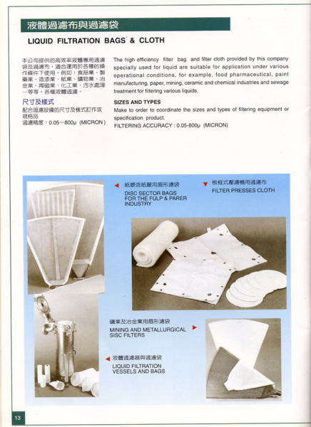 集塵袋、彈片式集塵袋、橡膠頭集塵袋、法蘭式集塵袋、木工加工機專用集塵袋、平頭式集塵袋、包鐵圈或包繩索集塵袋、倒吊式集塵袋、集塵機濾袋、彈片式濾袋、橡膠頭濾袋、法蘭式濾袋袋、木工加工機專用濾袋袋、平頭式濾袋、包鐵圈或包繩索濾袋、倒吊式濾袋、濾布濾袋、收塵袋、濾布、濾棒、打折式過濾管、除塵袋、壓濾布、壓濾機濾布、過濾布、脫水機濾布、穿頸式濾布、披掛式濾步、蝴蝶式濾布、pp濾布、單絲濾布、複絲濾布、打摺式濾芯、打摺式濾筒、濾筒彈夾式濾管、粉塵收集袋、除塵袋、除塵布袋、收塵袋、濾袋、過濾袋…....等,客戶可以指定各種樣式尺寸,本公司依據圖面織造縫製。