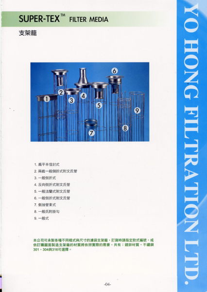 支架籠 常見名稱: 支架籠、防塵骨架。 原理與用途: 將支架籠放入集塵袋,使集塵袋可以撐開而達較優集塵效果。 櫞凱科技股份有限公司 http://www.yuankai.com.tw/ 新北市鶯歌區...