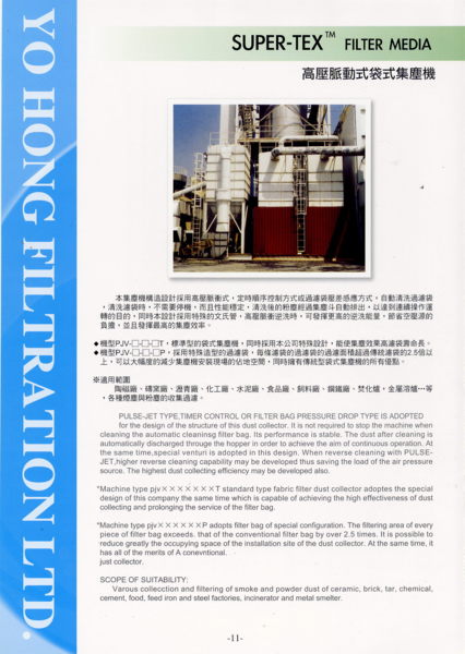 常見名稱與相關產品: 集塵機、集塵塔、彈夾式集塵機、脈衝式集塵機、旋風式集塵機、支架籠、扁平半信封式支架籠、兩截一般倒折式支架籠附文氏管、一般倒折式支架籠附文氏管、反向倒折式支架籠附文式管、一般法蘭式...