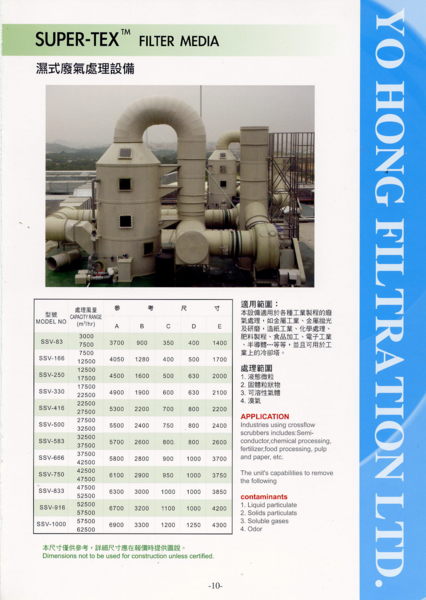 功能用途: 洗滌塔(濕式廢氣處理設備)乃是利用液滴捕集塵粒與使用藥劑讓廢氣中之有害物質進行氧化與中和反應, 而達到去除有害物質使排出的廢氣對環境無害。 處理範圍: 1.液態微粒 2.固體粒狀物 3.可...
