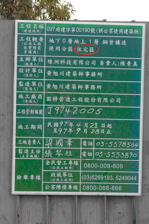 1. 公司名稱企圖魚目混珠2. 使用區分註明住宅區,讓人以為是蓋住宅。圖片by Joel