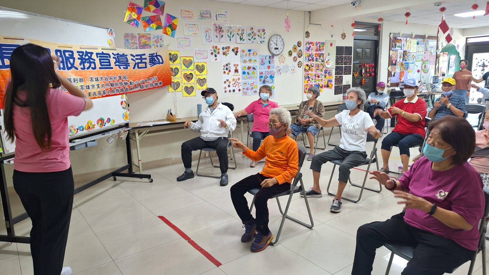 為了讓更多長輩了解長照資源,今年特別安排113年「有我愛相隨,不孤單」長照服務宣導公益活動,今天來到第二站——社團法人高雄市愛耆扶慈善關懷協會。當我們抵達現場時,看到許多長輩早早地來到場地,臉上帶著期待的笑容,這種迫不及待的熱情深深地打動了我們。透過簡單明瞭的動作搭配關鍵字,讓長輩們能夠快速且印象深刻地記住開場舞,許多長輩不怯場,和我們一起歡樂地舞動身體。