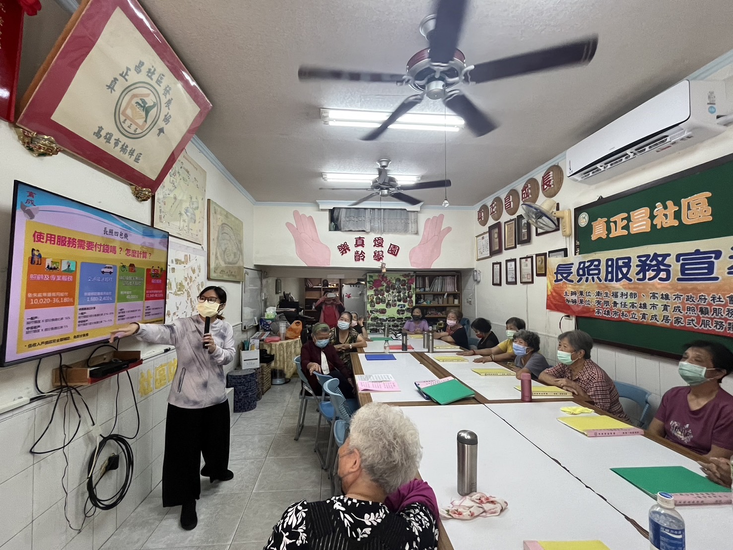 從宣導開始前,許多長輩就提出對於申請居家服務的疑問,例如「申請居服好多次,但每次都沒過。」經過向長輩了解後,原來是因為長輩身體健康,生活行動能力都沒有問題,因此尚未達到申請居服的標準。接下來由本機構張諍樺督導向長輩更詳盡的介紹長照2.0所提供的服務以及申請方式。長輩們都專注的聽講,更是熱絡的與講者討論。