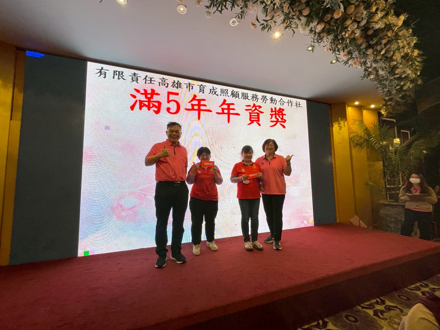 育成合作社提供居家照顧服務已滿16年,這期間我們走過長期照顧十年計畫,到今年度迎來長照3.0的升級計畫,育成在百家爭鳴、競爭激烈的環境下,在蔡起旭理事主席的帶領下仍保有一席穩定發展的機會,今年度社員大會暨春節聯歡活動,除了鼓勵滿5年的同仁頒發獎金、滿10年的同仁致贈獎金與獎牌外,也頒發高額考績獎金、春節禮金,並辦理摸彩活動(以獎金代替禮品)以感謝每一位為育成付出、為長照努力的照顧服務員們。