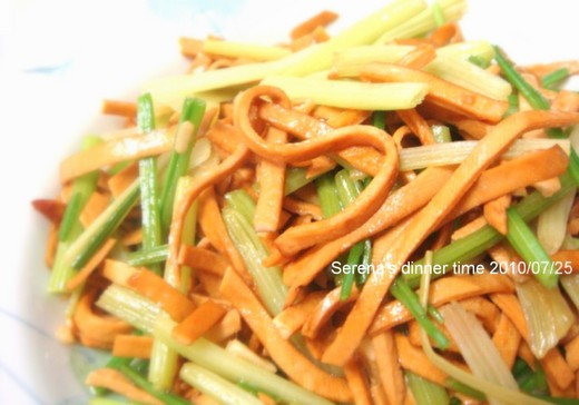 芹菜1/2把、乾絲1碗、蒜頭、米酒1小匙、鹽1小匙、味淋1小匙