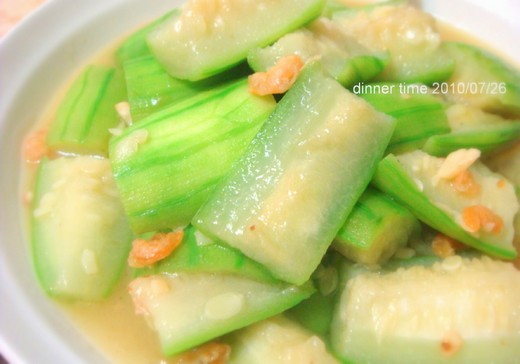 PS:千萬不要煮到絲瓜呈現全透明狀,因為絲瓜裝盤後的溫度,會使絲瓜繼續熟,到時絲瓜上桌後會變得過於軟爛。