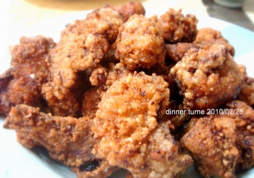 7. 將炸至淺黃色的雞肉塊先撈起。