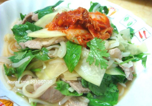 4. 高麗菜切成細絲、五花肉切成小片備用。
