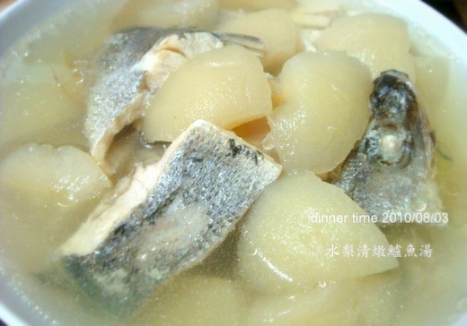 新鮮水梨1~2顆、新鮮鱸魚1尾