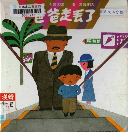 最後,小男孩終於在一下一上的手扶梯找到爸爸,故事結束在封底──爸爸牽著兒子的手回家。