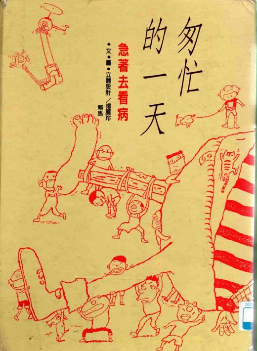 作者所謂的「由兩個不同方向發展的故事」,是指前後兩個封面的各自標題,不管是從右邊《匆忙的一天:急著去看病》,還是左邊《匆忙的一天:趕著去探病》開始翻,都可以看到故事進展,而且兩個故事會在中間會合喔。