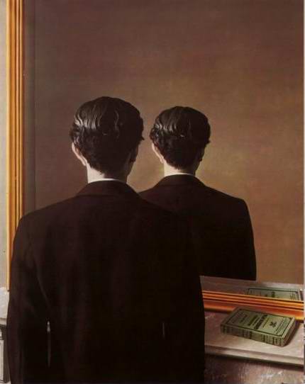 在講座中,楊佳嫻老師首先深入淺出地比較文學、美術及音樂在藝術中的相互關係,三者雖是以不同的表現方式,但同樣都是有距離的美感及表示特定的意象。以美術的表現而言,她舉出比利時的超現實主義畫家René Magritte雷內•馬格利特的作品「Not to Be Reproduced」(鏡子內反射的人像不是面對照鏡者,而是背對著),這幅作品不合常理的表像,但更直接反應內心的真實面~作者內心有困境,但無法面對自己。楊佳嫻老師說,美術常以具體畫與抽象的意義作連結,而在詩裡也常常反應類似的狀況。