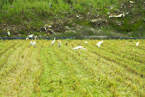 鷺鷥群受到我起身而驚嚇, 一哄而散,