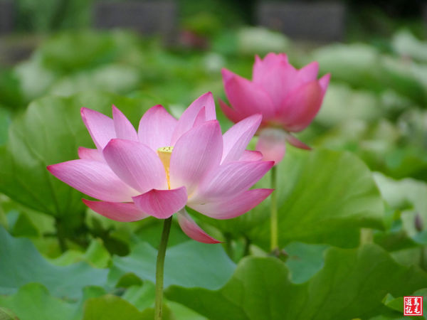 我趨前要賞荷拍花,這群埃及聖䴉倏地展翅高飛消失眼前。欣賞滿園荷葉田田,只見初荷花容,彷彿少女嬌羞粉頰,
