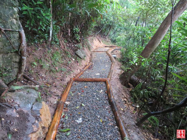 離開劍潭山三角點後續前行山腰泥土小路繞過來接回主線,續下坡然後又是上坡,這麼寬大的水泥階梯也算是特色,