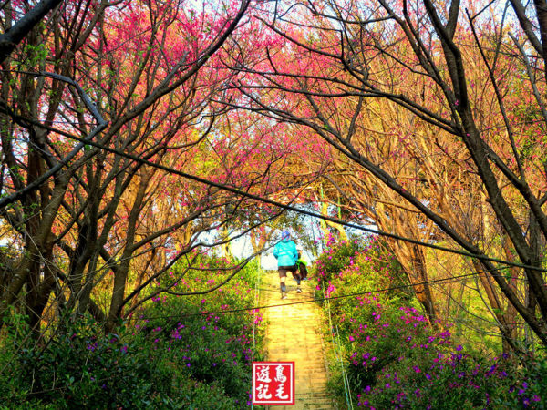 相思林後再越過馬路取右前方,依指標往火焰山,這段步道沿途也有許多櫻花綻放枝頭,