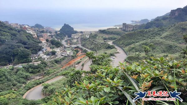 返回往瀑頂途中的右上叉路,拉繩漸往上爬,回望金水公路及水湳洞濱海景色,至山腰處轉平緩,續往右橫切後無路(未清理?)