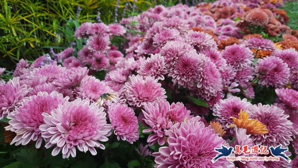 除了主角的菊花,引人入勝美得無以復加,讓人目不暇給外,園區內還有粉紅醉蝶花及玫瑰花盛開...