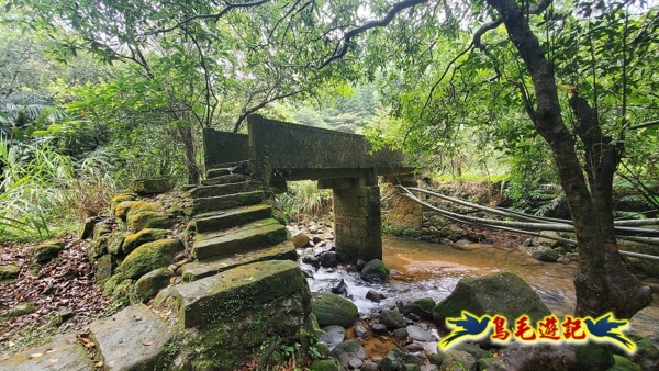 經過柯子林石磐瀑布,可惜樹木遮掩難窺全貌,再經過一座古早石板橋,續往五指山休閒農場,
