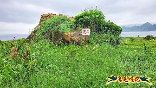踏過雜草爬上巨岩(豎有「禁止攀岩小心有蛇」告示牌),雙膨山海拔18公尺,不知名6號基石。雖然基石三面有刻字且上紅漆,