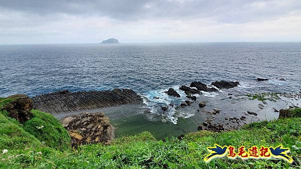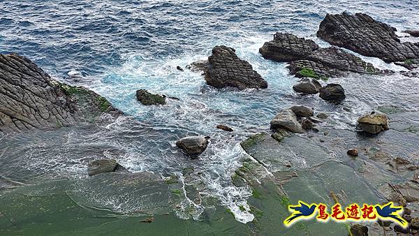 俯瞰豆腐岩礁石上有不少釣客,海浪和岩礁一次又一次激撞出白色浪花,規律又協調的波濤節奏,真實呈現眼前,