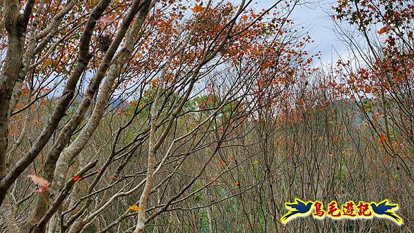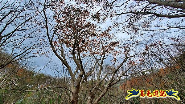 今年的楓況似乎都不理想,連角板山這邊也不例外,大都已經掉葉了,只有少數幾棵依稀殘紅掛樹梢,憑添幾分淒美哀怨。
