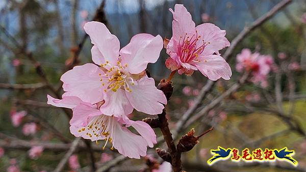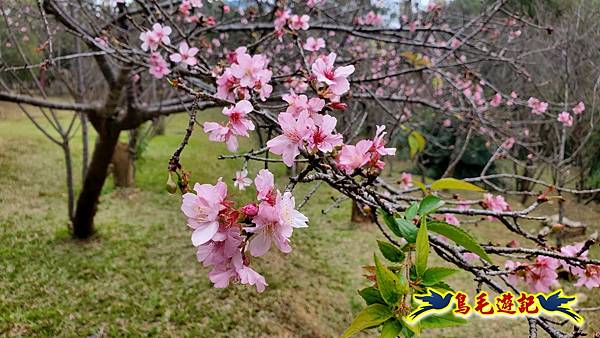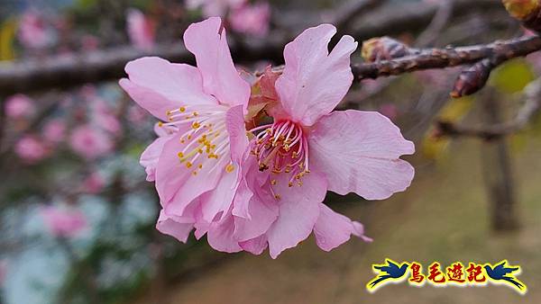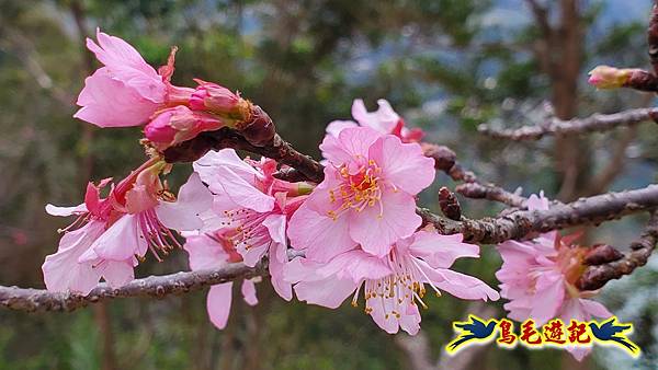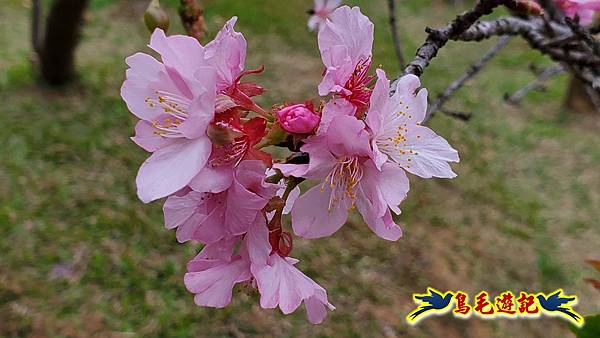 今天來此為之驚豔的是有一株櫻花開得很美,依花形及色澤研判不是山櫻花,按照花期而推斷,若沒猜錯的話應該是寒櫻~~